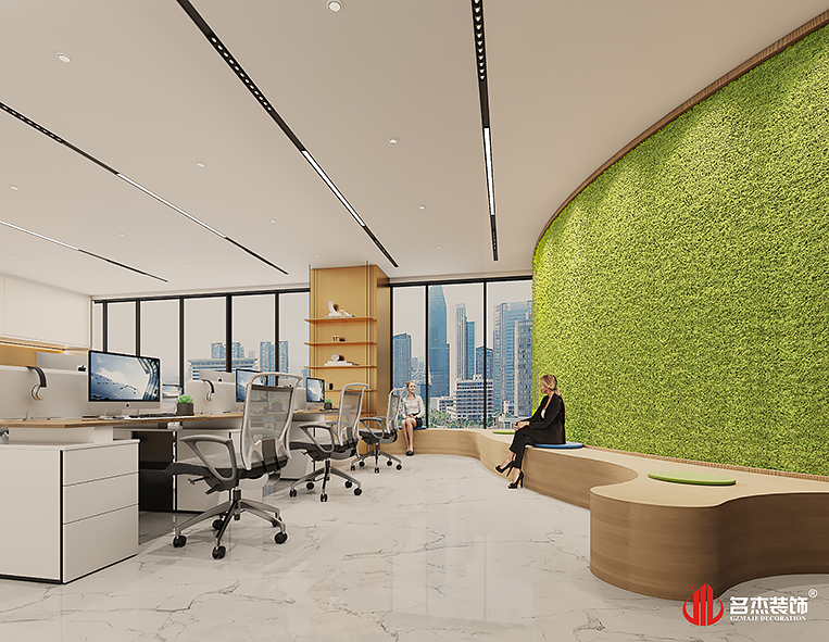 整體辦公室裝修設計空間是采用時尚簡約風格作為主題風格的,但設計團隊根據該企業的科技行業屬性,加入曲線這個設計元素來作為點綴,搭配米白色系,空間的設計層次感就非常明顯了。適當加入弧線燈帶也是能夠讓單調的天花吊頂有了不一樣的設計表達方式,增加整體辦公室裝修設計空間的設計感。#廣州辦公室裝修設計公司#